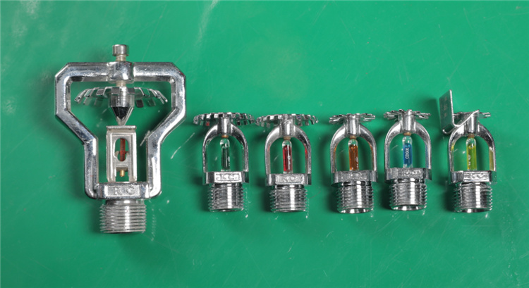 在玻璃球洒水喷头中,公称动作温度与液体色标相互对应。常见的洒水喷头公称动作温度有 57℃、68℃、79℃、93℃四种,其中以 68℃最为常见。公称动作温度为 57℃时,液体色标为橙色;公称动作温度为 68℃时,液体色标为红色;公称动作温度为 79℃时,液体色标为黄色;公称动作温度为 93℃时,液体色标为绿色。
